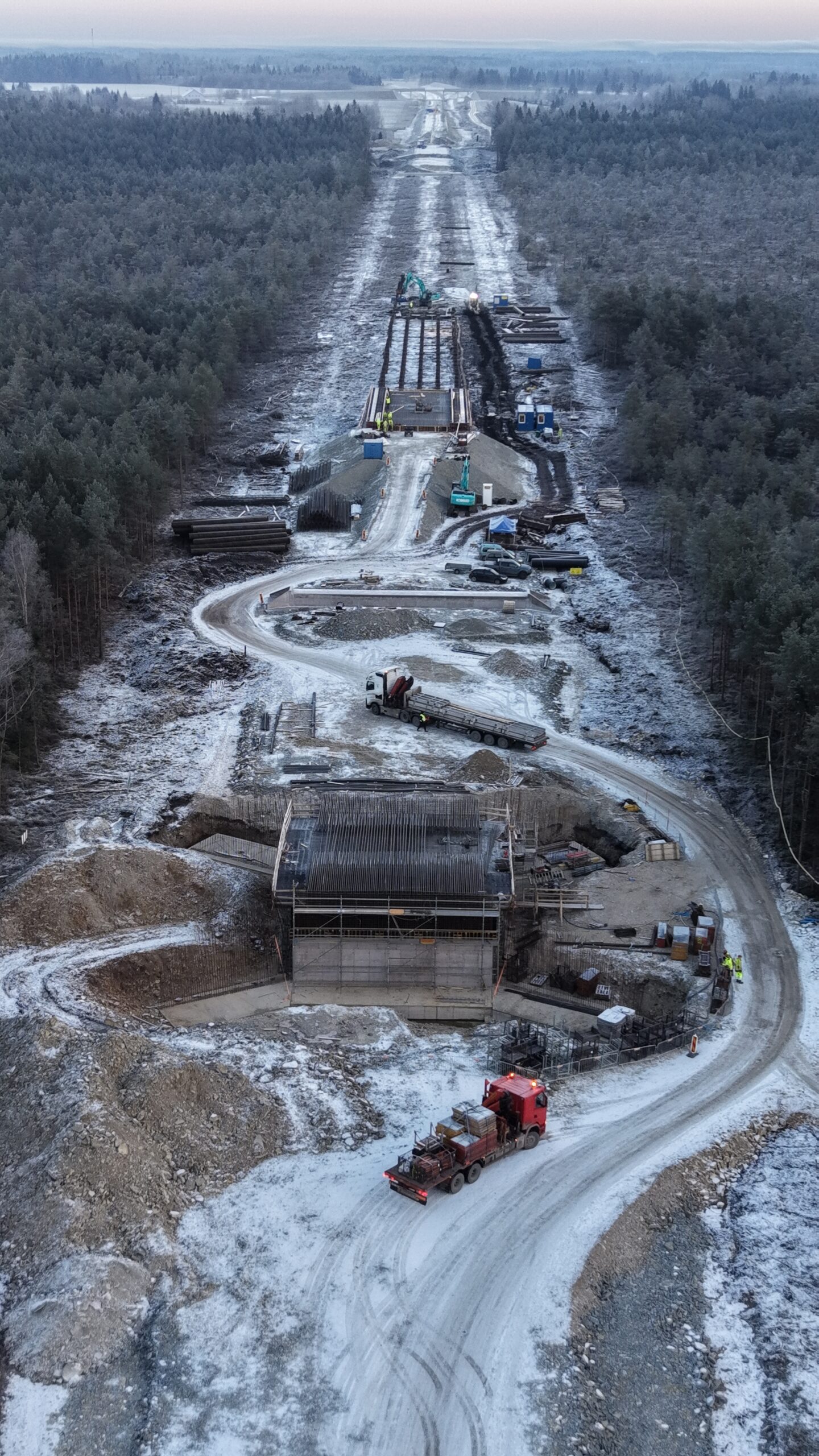 - Raudtee muldkeha ja aluste ehituse jätkamine.